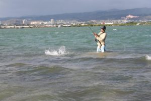インショアとはサンゴ礁に囲まれている内海、その内海の沖合いにある浅瀬で釣りを楽しみます。(オアフ島の北にあるカネオヘ湾にあるサンドバーは代表的な浅瀬です) これはハワイならではロケーションで島内に点在する浅瀬で立ち込みか、若しくはボートの上から又はショアからのエントリーにて沖合にあるフラットに渡ったり岸沿いの浅瀬でウェーディングをして釣りをします。