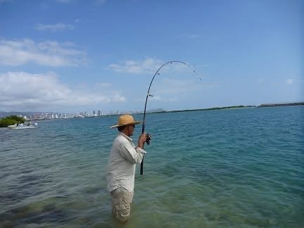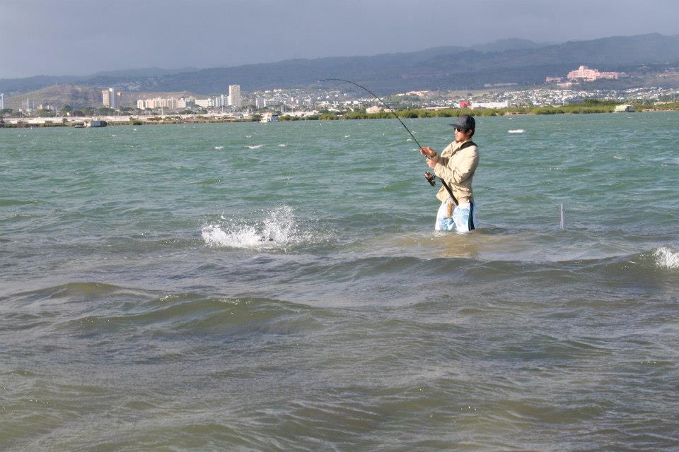 その他は詳しい事はお問い合わせ下さい。送迎はタクシー又はレンタカーをご利用下さい。 ライトタックル好きにはたまらないツアーです。オアフ島に点在するリーフにボートでエントリー若しくはショアからのエントリーにて沖合にあるフラットに 渡ったり、岸沿いの浅瀬でウェーディングをして釣りをします。 ミノーゲームやワーム等を使用しヒラアジ系をメインに楽しみます。サイズはもはやライトではありませんがライトタックルで楽しめます。また、このゲームでは何とボーンフィッシュまで狙う事ができ、よりエキサイティングが1日を 過ごせるでしょう。